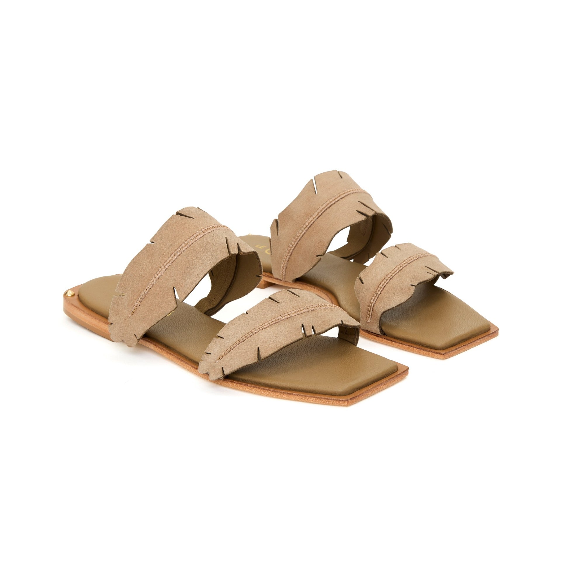 The Banana Leaf Flats capture the refined, organic spirit of Le Borô, blending artisanal craftsmanship with tropical inspiration. Its delicately cut leather straps echo the graceful movement of banana leaves, offering a sense of lightness and a distinctive identity for everyday wear.
