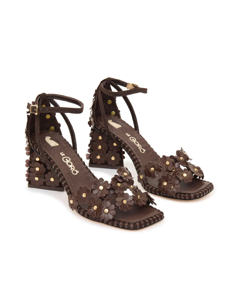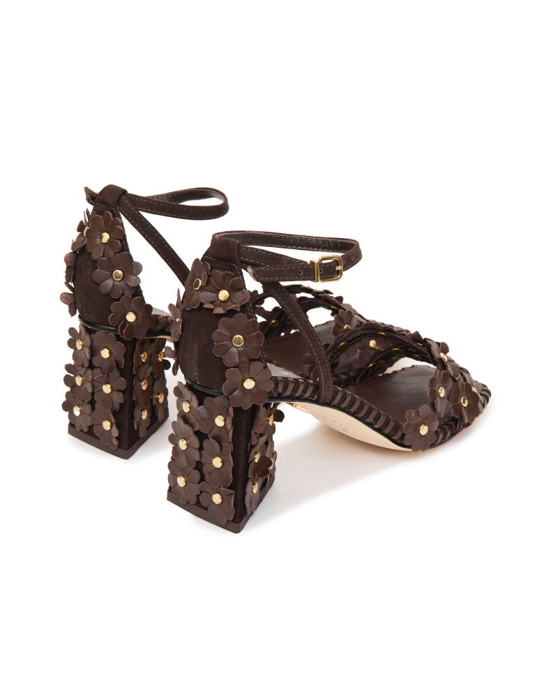 Crafted in premium leather, this standout sandal features 74 hand-applied daisies per pair, creating a whimsical and elegant look. The heel is wrapped and adorned with daisy appliqués, while the side piping is detailed with delicate topstitching for a refined finish.