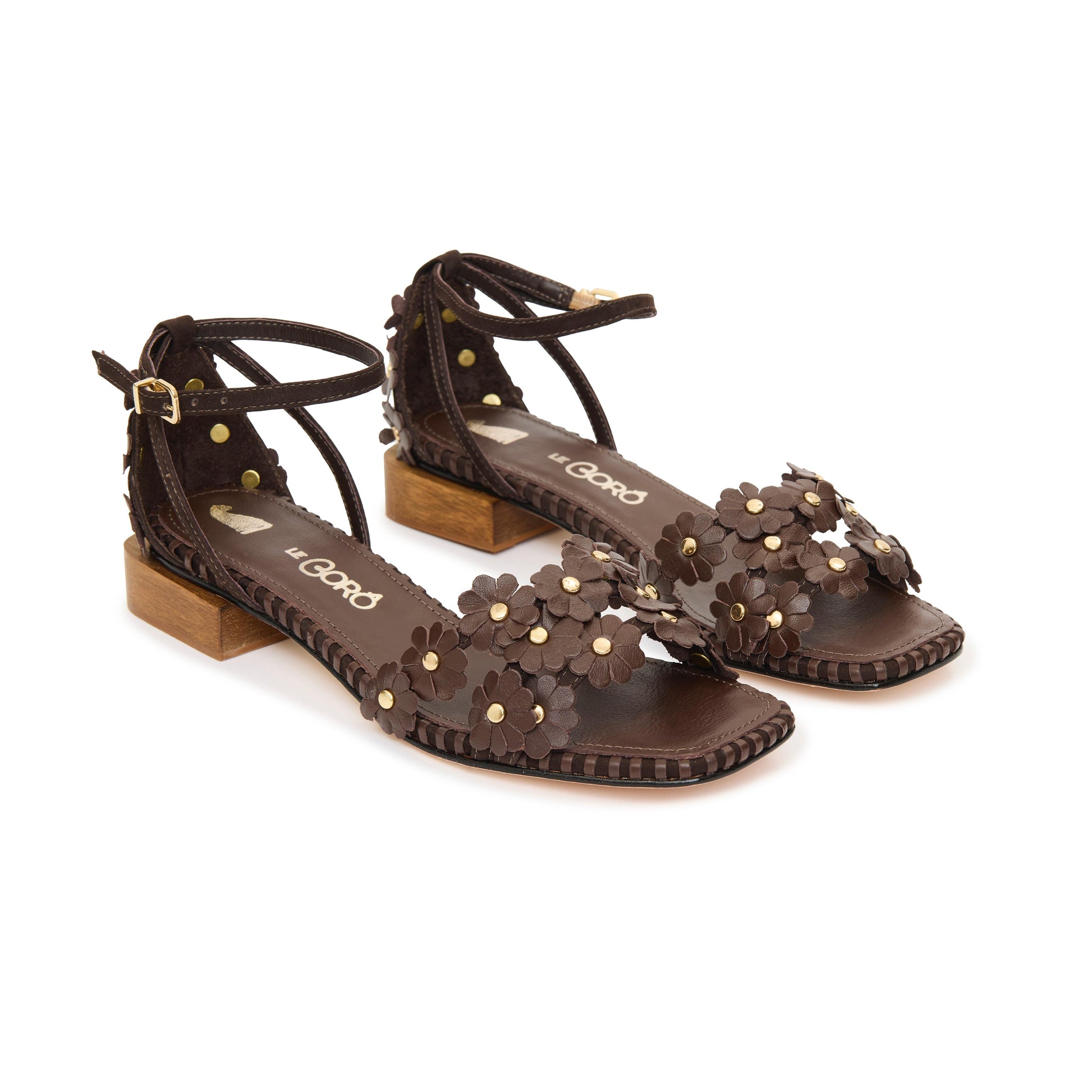 Delicately crafted in genuine leather, this charming sandal features 42 hand-applied daisy appliqués per pair, adding a playful yet elegant touch. The wooden heel brings a natural, earthy feel, while the side piping is finished with fine topstitching for a subtle, artisanal detail.
